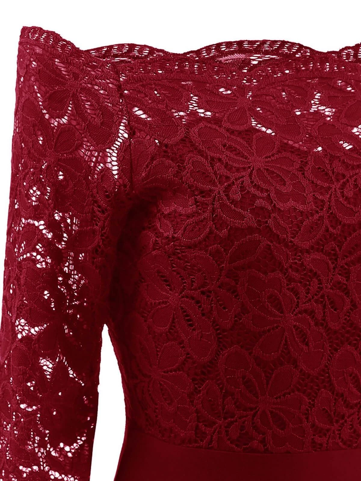 An adventurous-infused stunner from Retro Stage! A gorgeous vintage style dress full of feminine radiance, the gorgeous wine red, the dark blue and black silhouette is dancing with lace floral throughout the midcentury silhouette. Crafted in lace the off-shoulder is framed by the darling short sleeve and is centered by a natural waistline for a dash of retro accent.