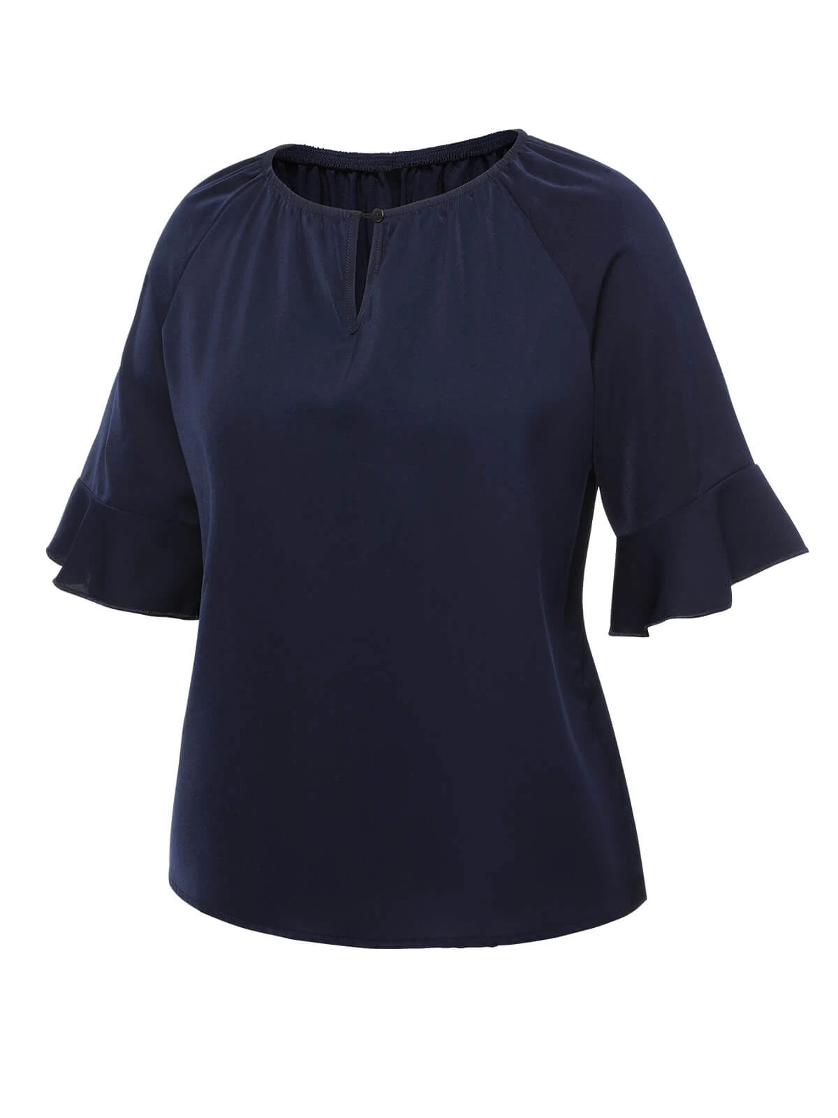 Deep Blue 1960s Flare Sleeved Ruffle Blouse
