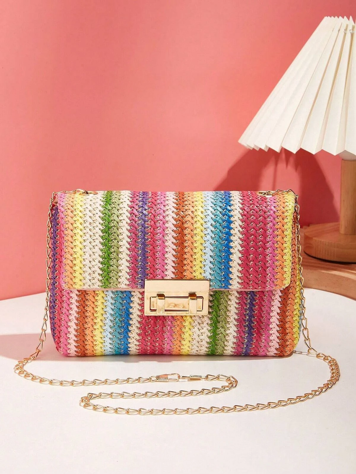 Multicolor Rainbow Flap Straw Bag
