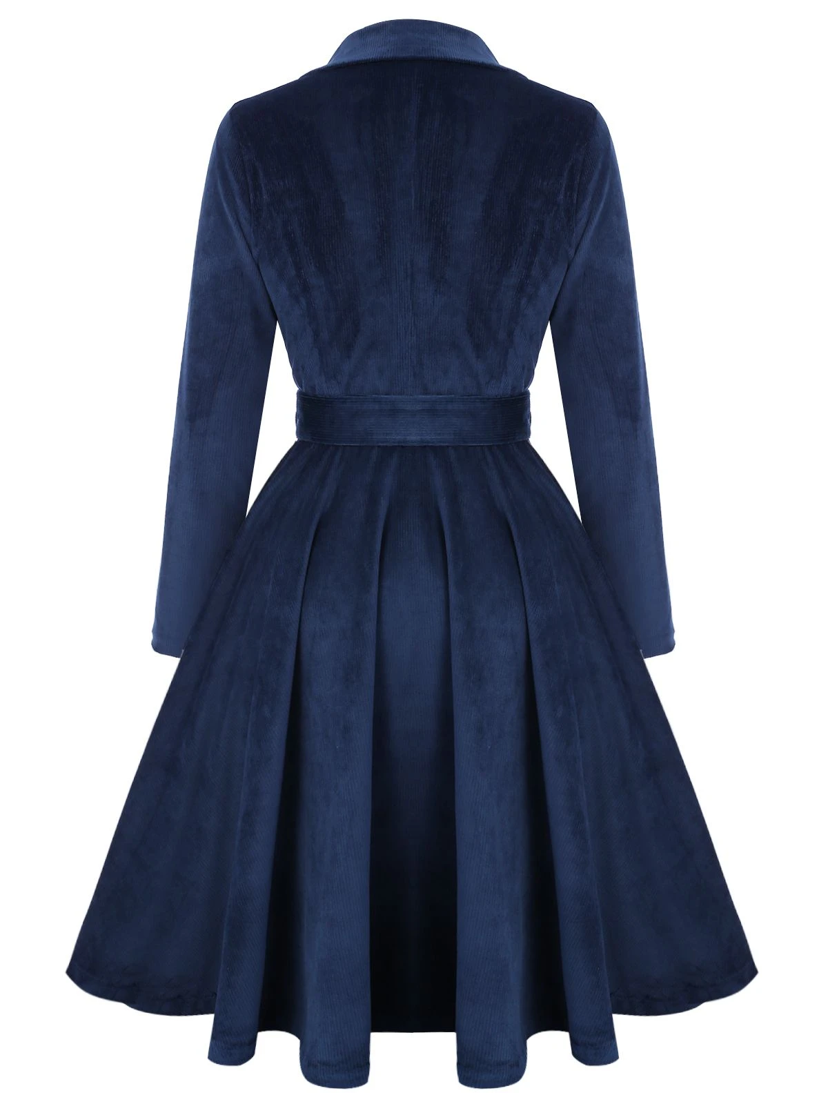 This mid-length navy blue 1950s velvet long coat will definitely surprise you! The elegant and classic vintage coat is perfect for winter wear and can be worn for work, dates, and daily life. The label not only has a professional style of a suit but also reveals a high-end sense, increasing your graceful temperament. The corduroy fabric feels delicate, smooth, and skin-friendly, perfectly combining temperature and demeanor, making it comfortable, warm, and stylish to wear. This vintage coat has pockets on both sides and a detachable belt at the waist for easy cinching and a close-fitting waistline. The classic 1950s skirt-like hem fully demonstrates your feminine elegance and charm. Get ready to amaze everyone with this retro coat, you’ll have a gorgeous coat with a petal hem like a real 1950s lady!