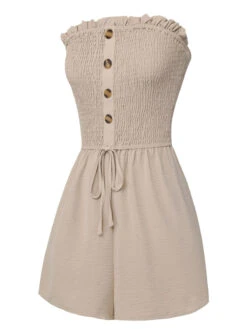 Beige 1950s Solid Smocking Strapless Romper